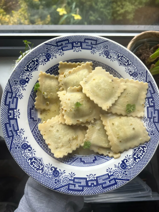 Made in Italy, our fresh ravioli is filled with creamy ricotta and spinach, and reach to enjoy in just 6-8 minutes. It's the ultimate weekday treat! Stir through sizzling salted butter and sage or a spicy arrabbiata sauce for the perfect comfort food.