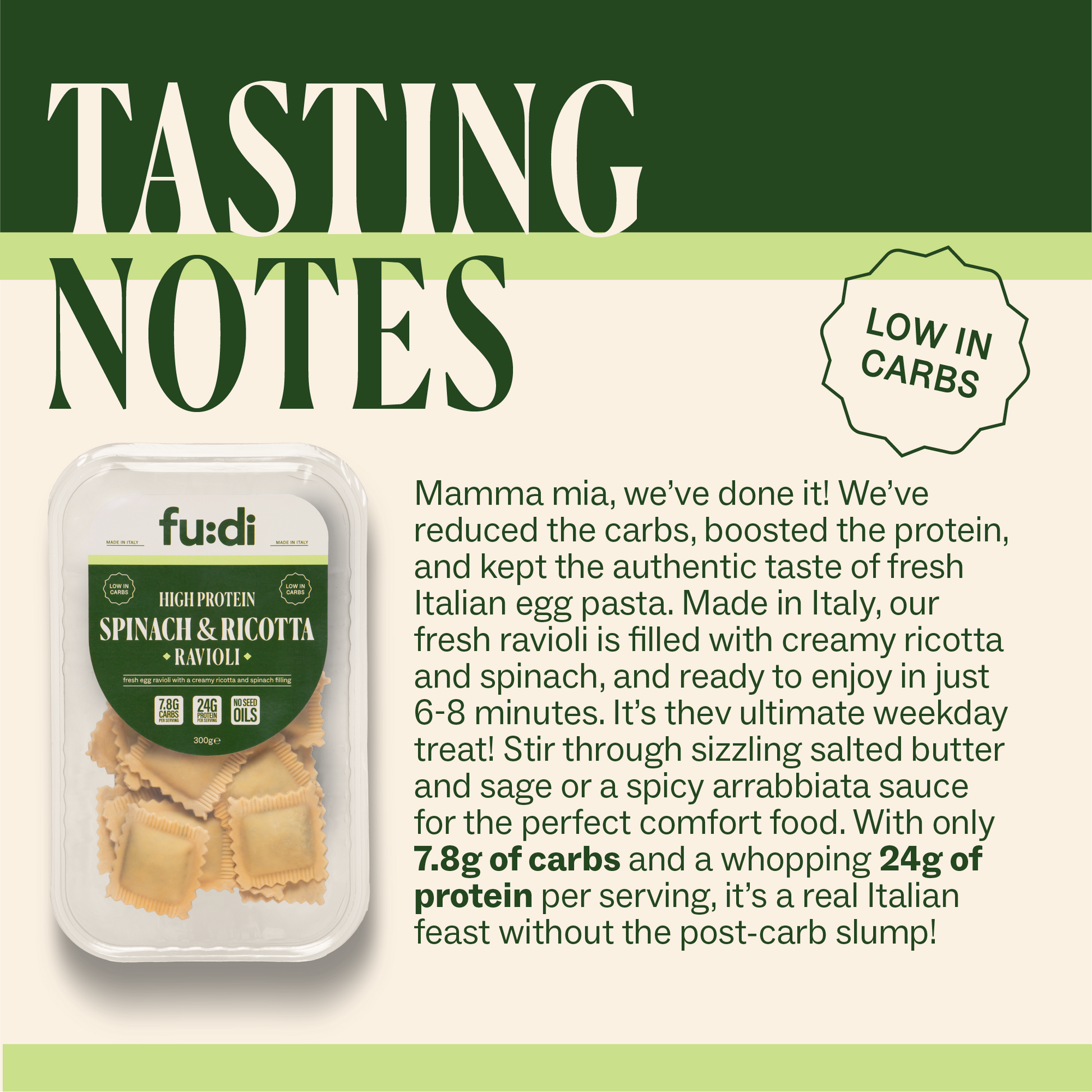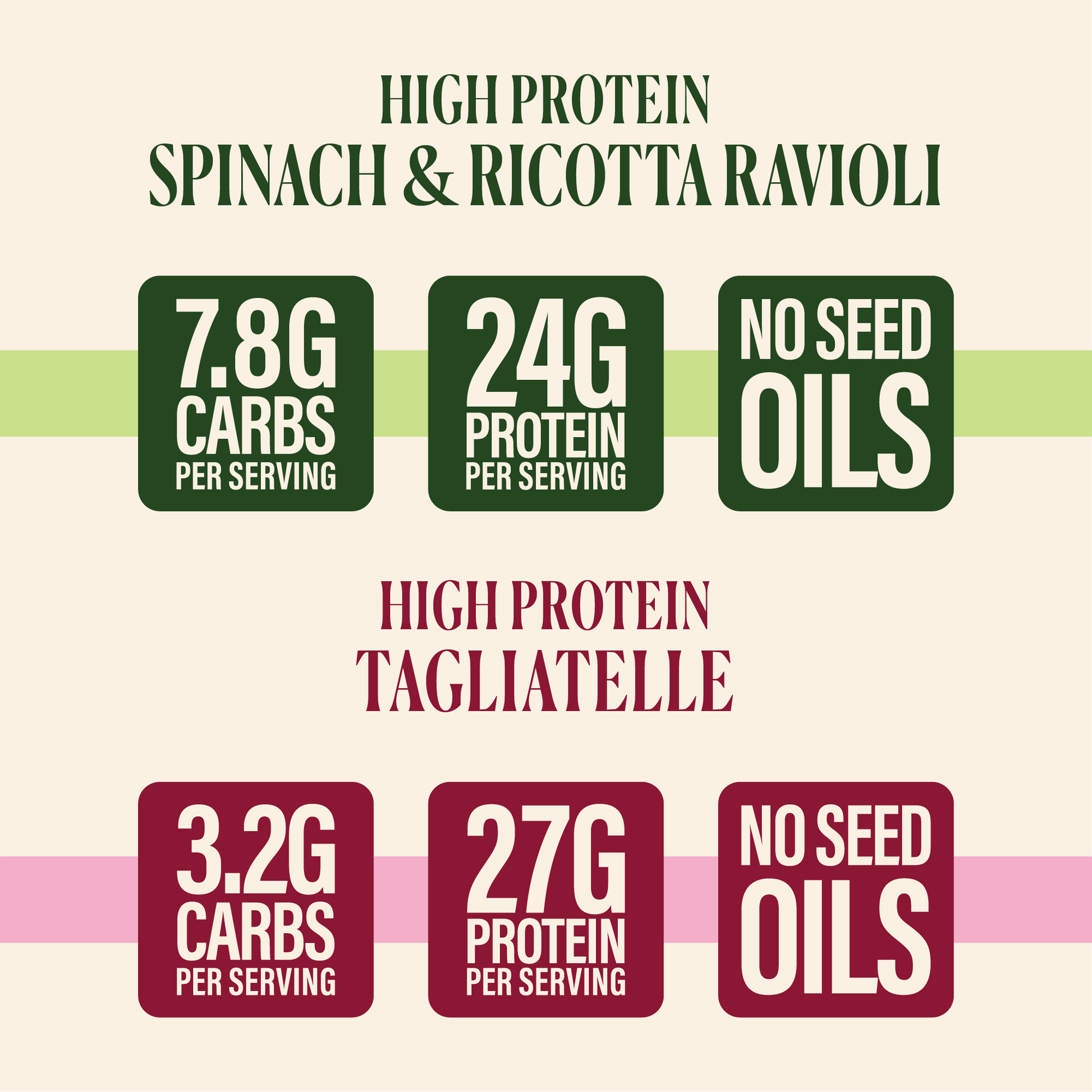 From ravioli with a world of fillings to fresh egg tagliatelle, our incoming pasta range is high in protein, low in carbs and seed oil free!