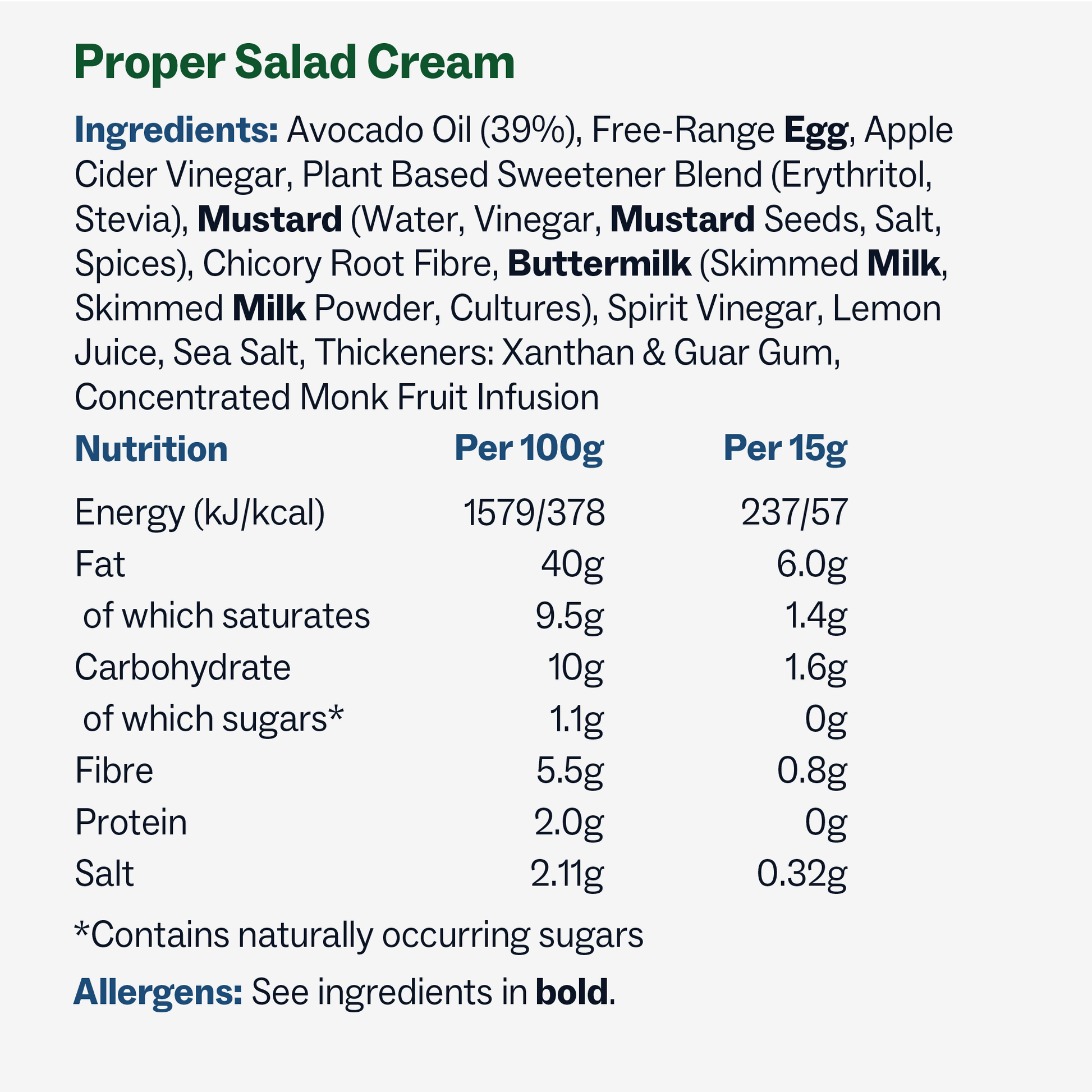🥑 Proper Salad Cream – made with 100% avocado oil and no added sugar. Proper by nature, posh by ingredients.