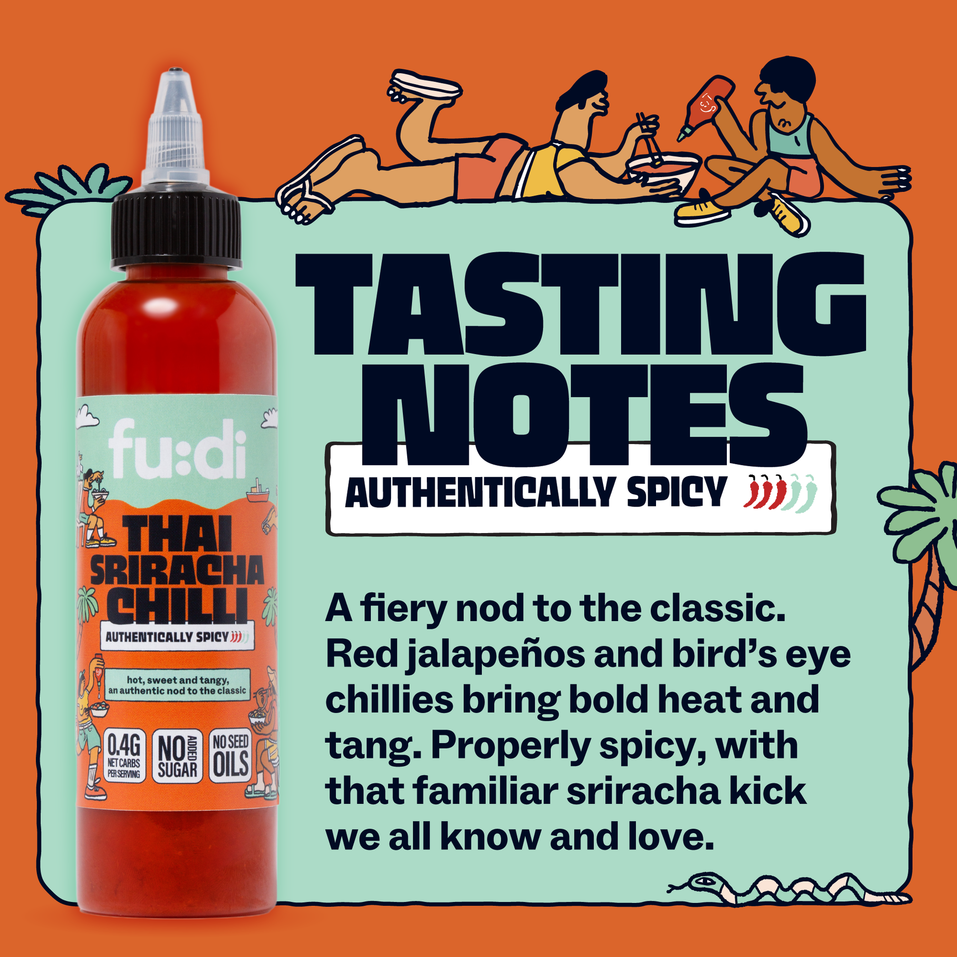 Meet our Thai Sriracha Chilli Sauce: a fiery, tangy nod to the classic. Made with red jalapeños and bird’s eye chillies, it brings the heat without the junk.
